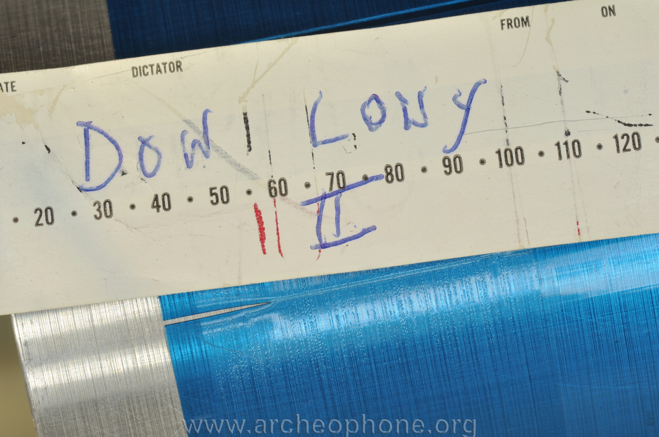 | Support d'enregistrement : | Dictabelt bleu | |||