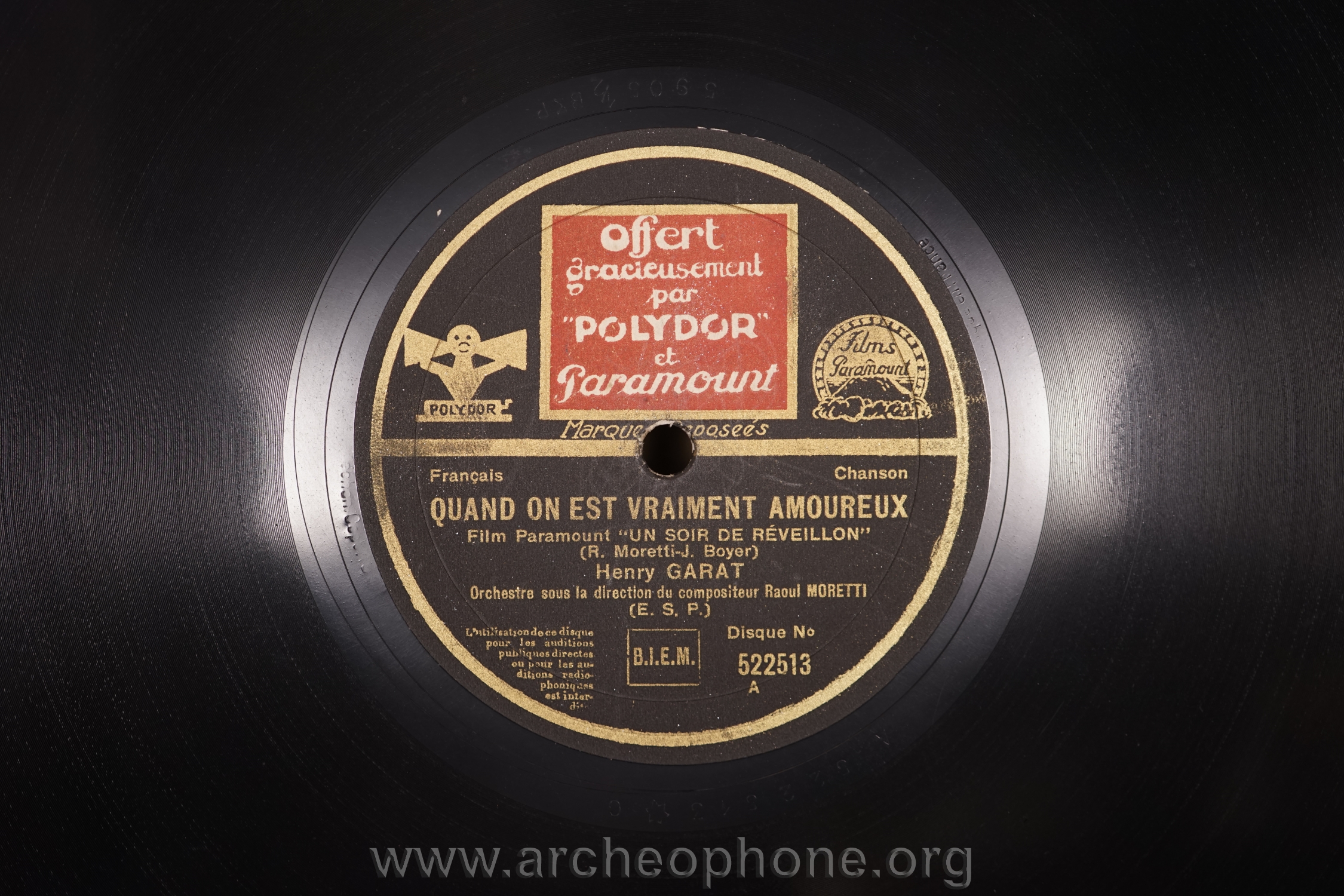 | Marque de fabrique, label : | Offert gracieusement par Polydor et Paramount | ||