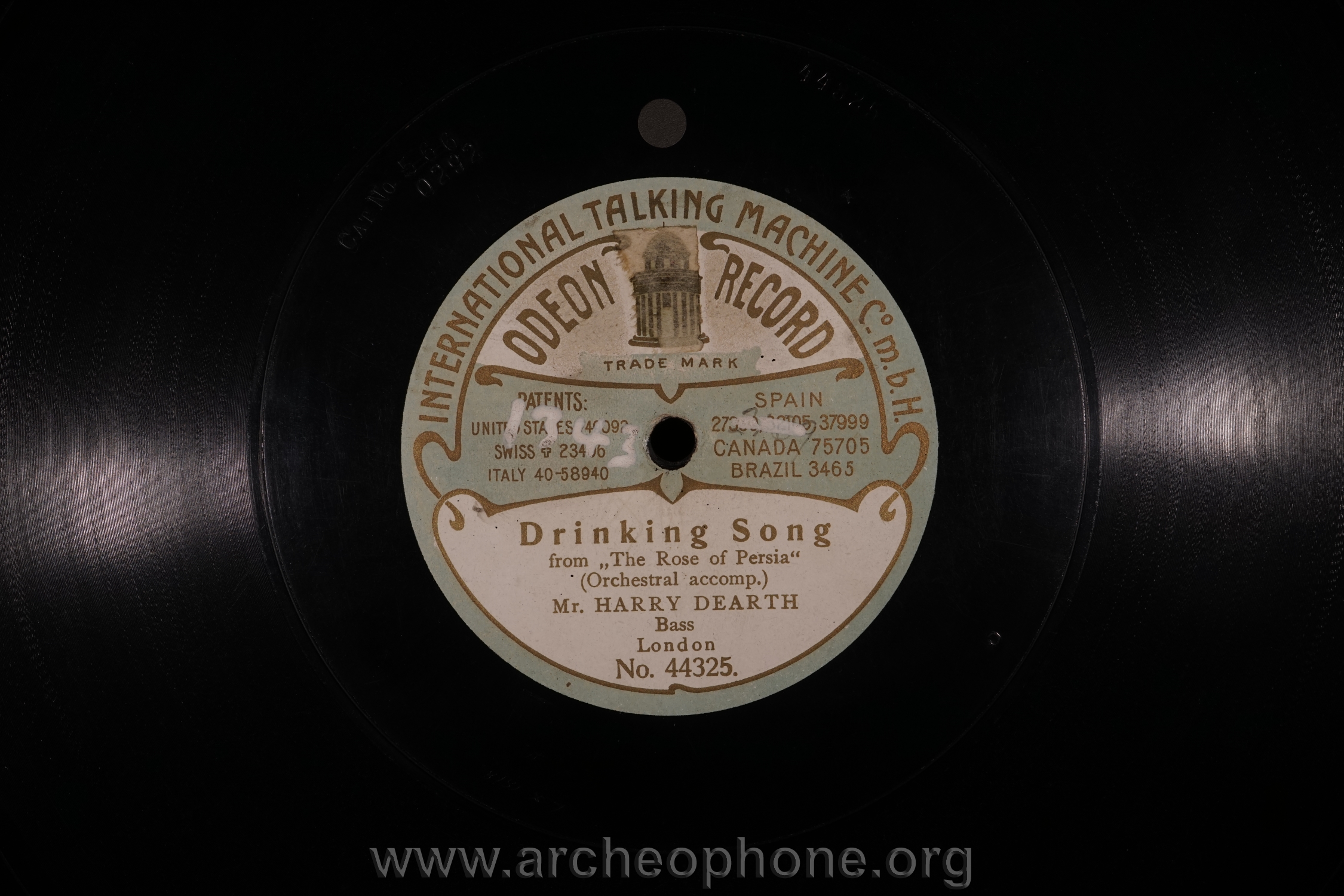 | Marque de fabrique, label : | Odeon International talking machine Co.m.b.H. |