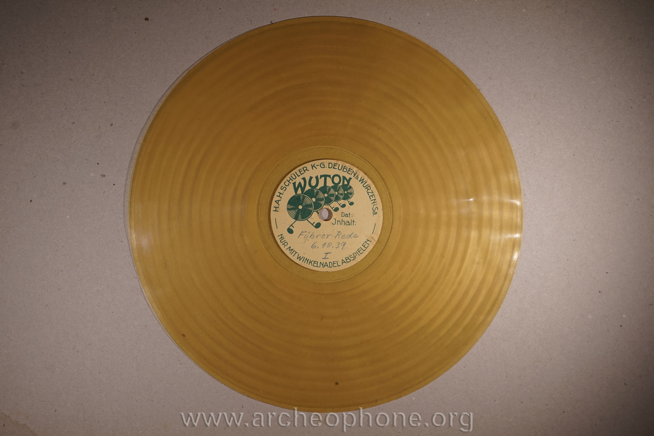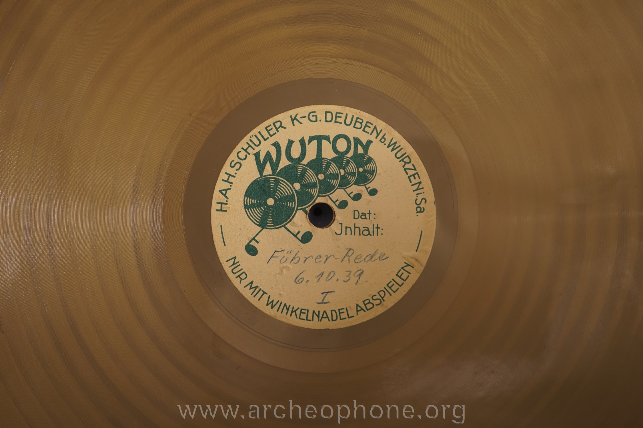 | Marque de fabrique, label : | Wuton - H.A.H. Schüler K-G. Deuben b. Wurzeni. Sa. - Nur mit Winkelnadel abspielen | ||||||