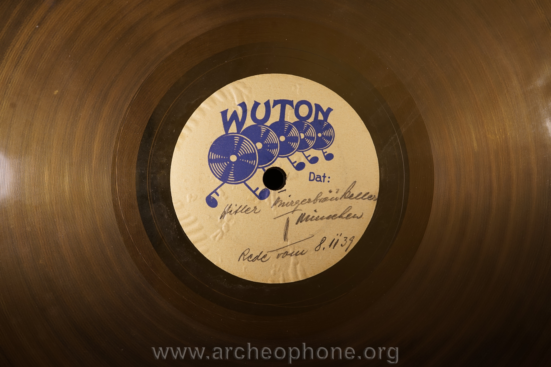 | Commentaires : | Paroles non transcrites. Disque souple. Mention manuscrite : - Hitler Bürgerbräukeller München Rede vom 8-II-39 [normalement, le 8-11-39, le jour de l'attentat]. Voir et comparer avec audio sur https://www.georg-elser-arbeitskreis.de/texts/audio34.htm |